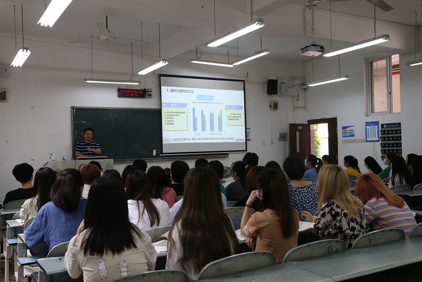 6月10日上午,校党委副书记、校长唐玉林教授走进课堂,面向19级数媒0031班以“大变局的中国与世界”为主题,多视角、深层次讲授了一堂别开生面的“形势与政策”示范课。马院部分思政课教师现场观摩,马克思主义学院院长许永莉主持。