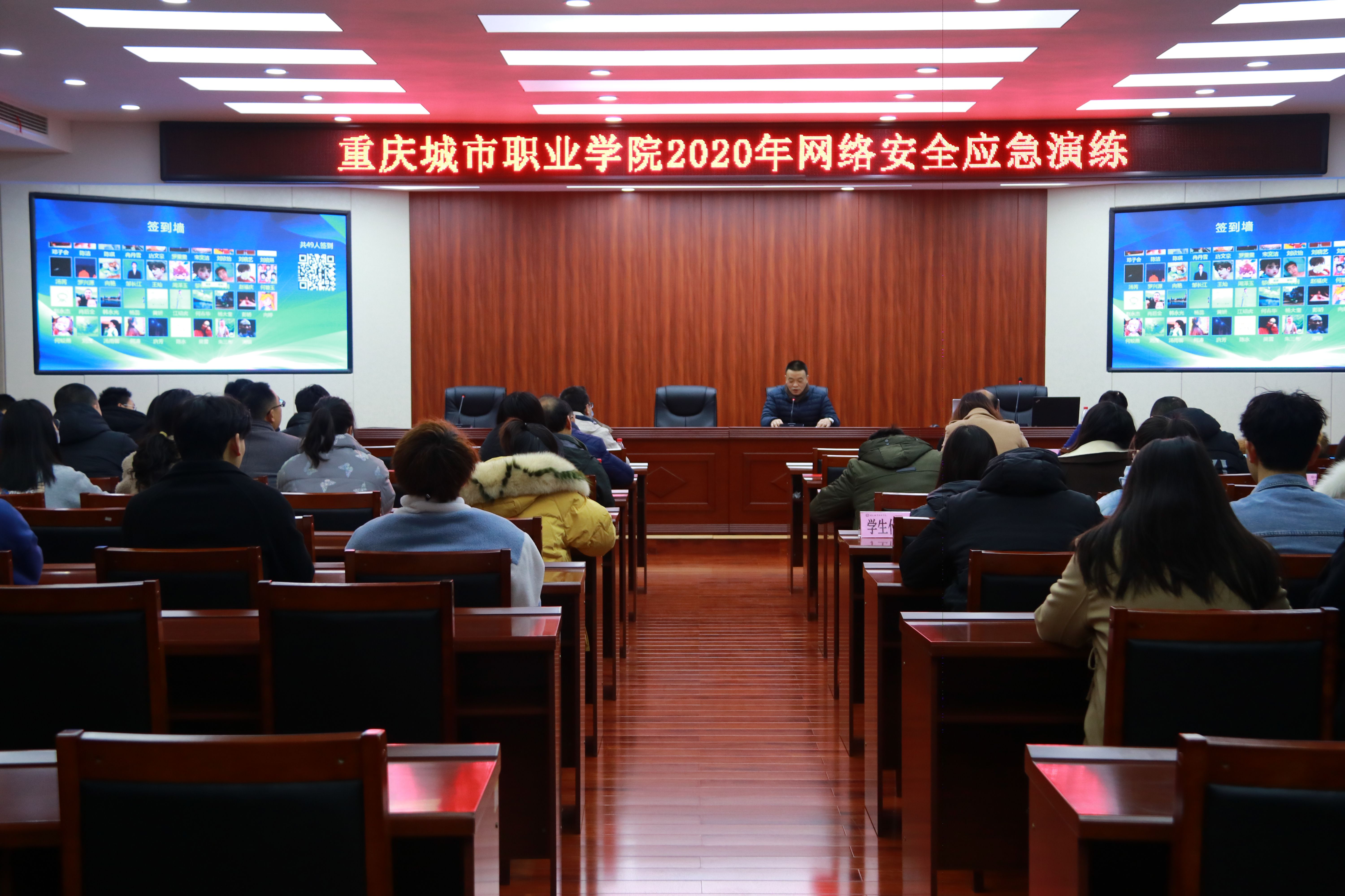 12月10日上午,学校在博学馆510会议室组织开展了2020年网络安全应急演练。党委书记刘波出席活动并讲话。党委委员、副校长文斌,各部门负责人、信息员和学生代表参加活动。活动还特别邀请了永川区网信办、区公安局和在永各高校负责网络信息安全工作的同志观摩和指导演练。学校图文信息中心主任梁修荣主持演练。